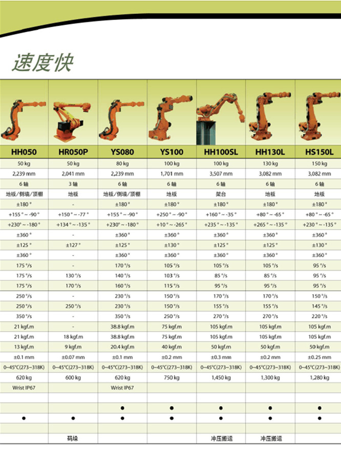 德國KUKA(庫卡)、MANZ、瑞典ABB、美國Adept、意大利COMAU、MOTOMAN(莫托曼)、FANUC(發(fā)那科)、KAWASKY(川崎)、HUYDAI(現(xiàn)代)、OTC(歐地希)、PANONSIONC(松下)、REINS(萊斯) 、日本三協(xié)機(jī)器人。